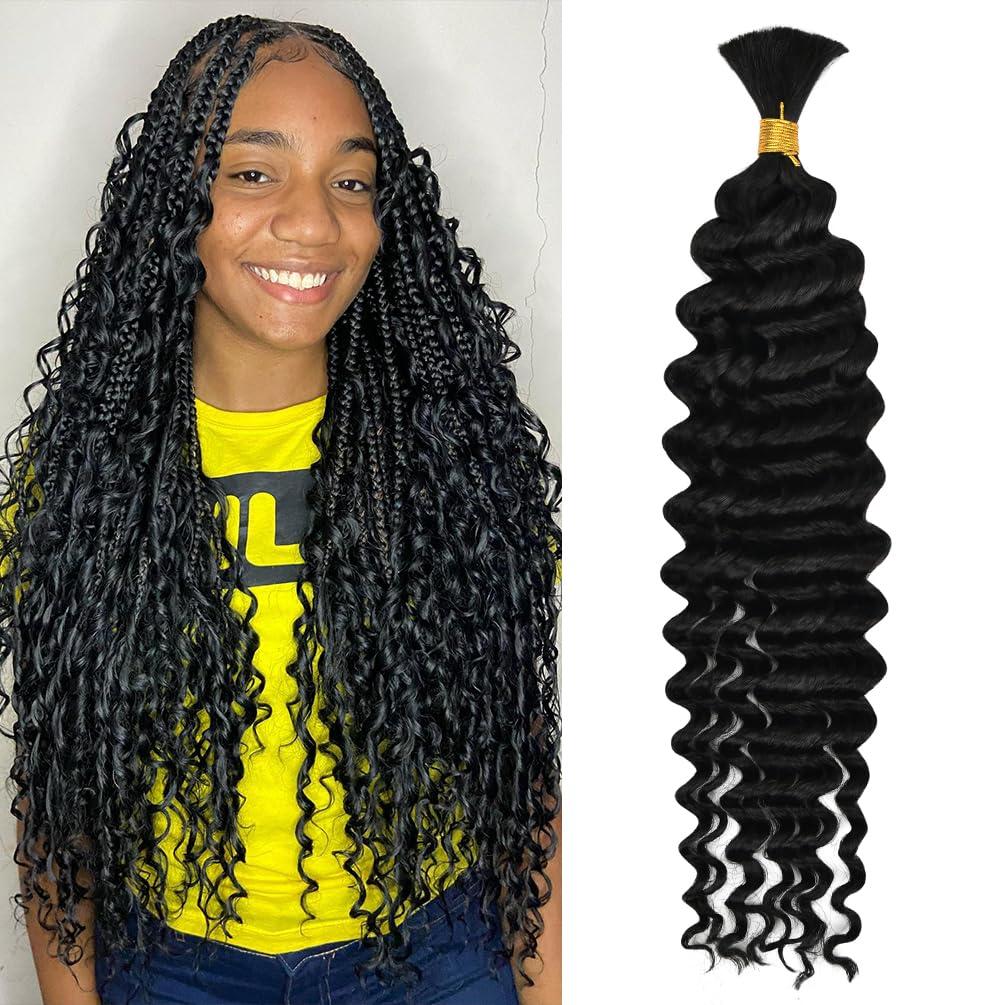 - Versatile Styling and Natural 100 percent human braiding hair curly provides a natural look and feel, allowing for customization in terms of length, thickness, and color. Human hair for boho knotless braids can achieve elegant updos, ponytails, and intricate braid styles. Deep wave bulk human hair for braiding can use for many types of hairstyles, such as box braids, boho braids, small bohemian braids, goddess braids, knotless braids, micro braids, and more.