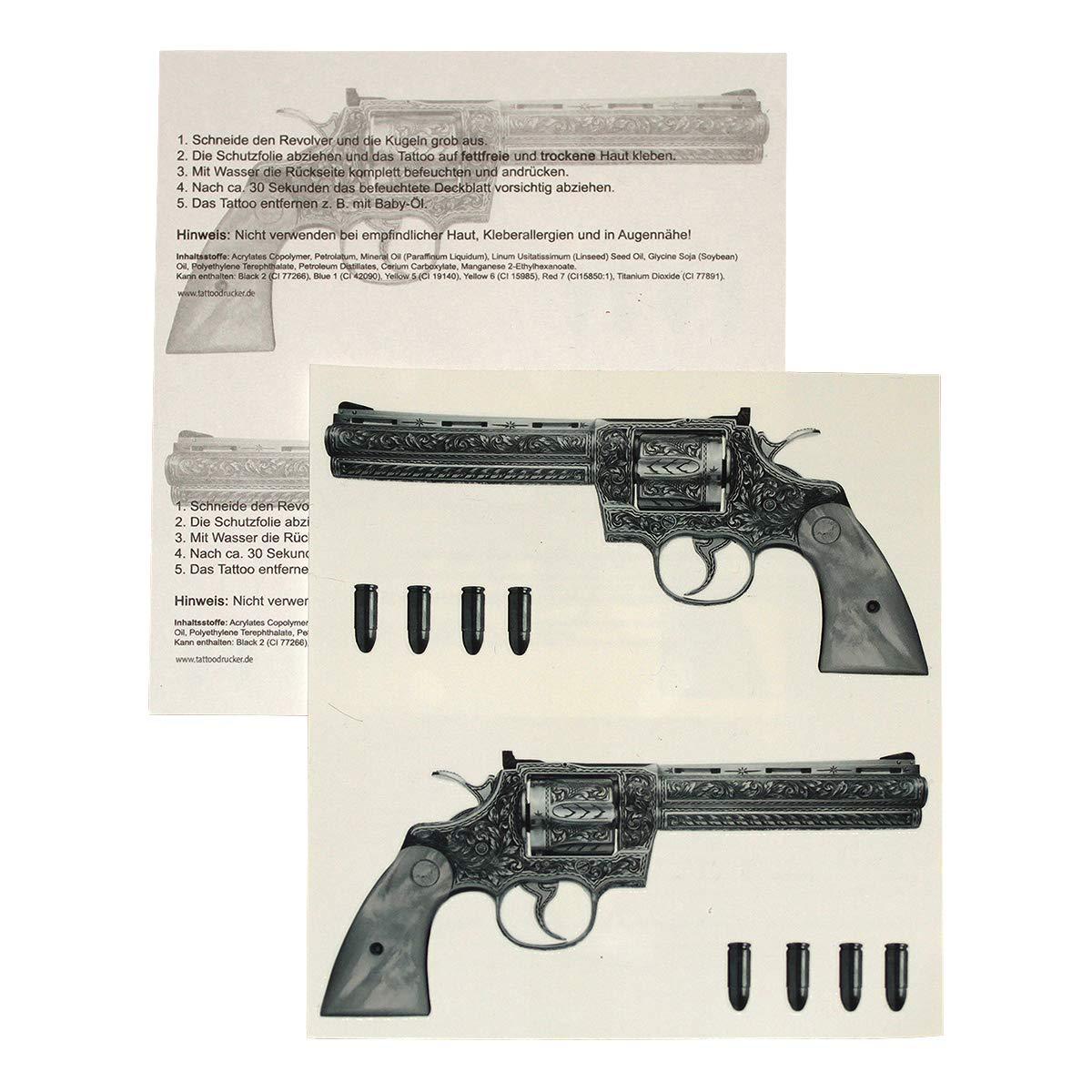 Here you have 10 Tattoo sheetes, with a gun (5 left / 5 right) in the size of approximately 57 x 125 mm.