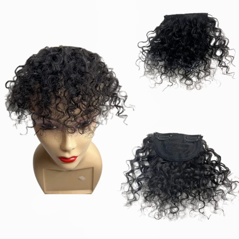 - 2.1 Piece/pack Kinky Curly Human Hair Bangs, Brazilian Remy Hair Fringe with 2pcs Clips in.