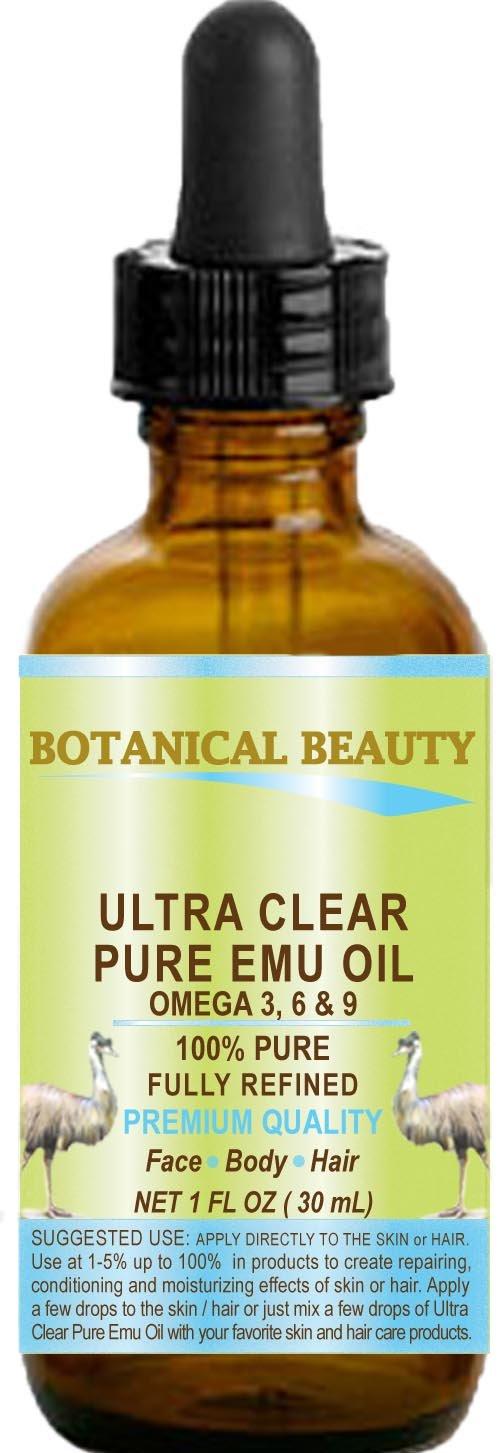 - Botanical Beauty PURE EMU OIL ULTRA CLEAR is one of the best oils to rejuvenate and regenerate skin tissues. PURE EMU OIL ULTRA CLEAR is a remarkable and stable source of vitamin E, vitamin B, vitamin C, Omega 3, Omega 6 and Omega 9 Essential Fatty Acids, Palmitic Acid, Stearic Acid, Oleic Acid, Gamma-linolenic Acid, Linoleic acid, and minerals It is an ideal light moisturizer for everyday use.