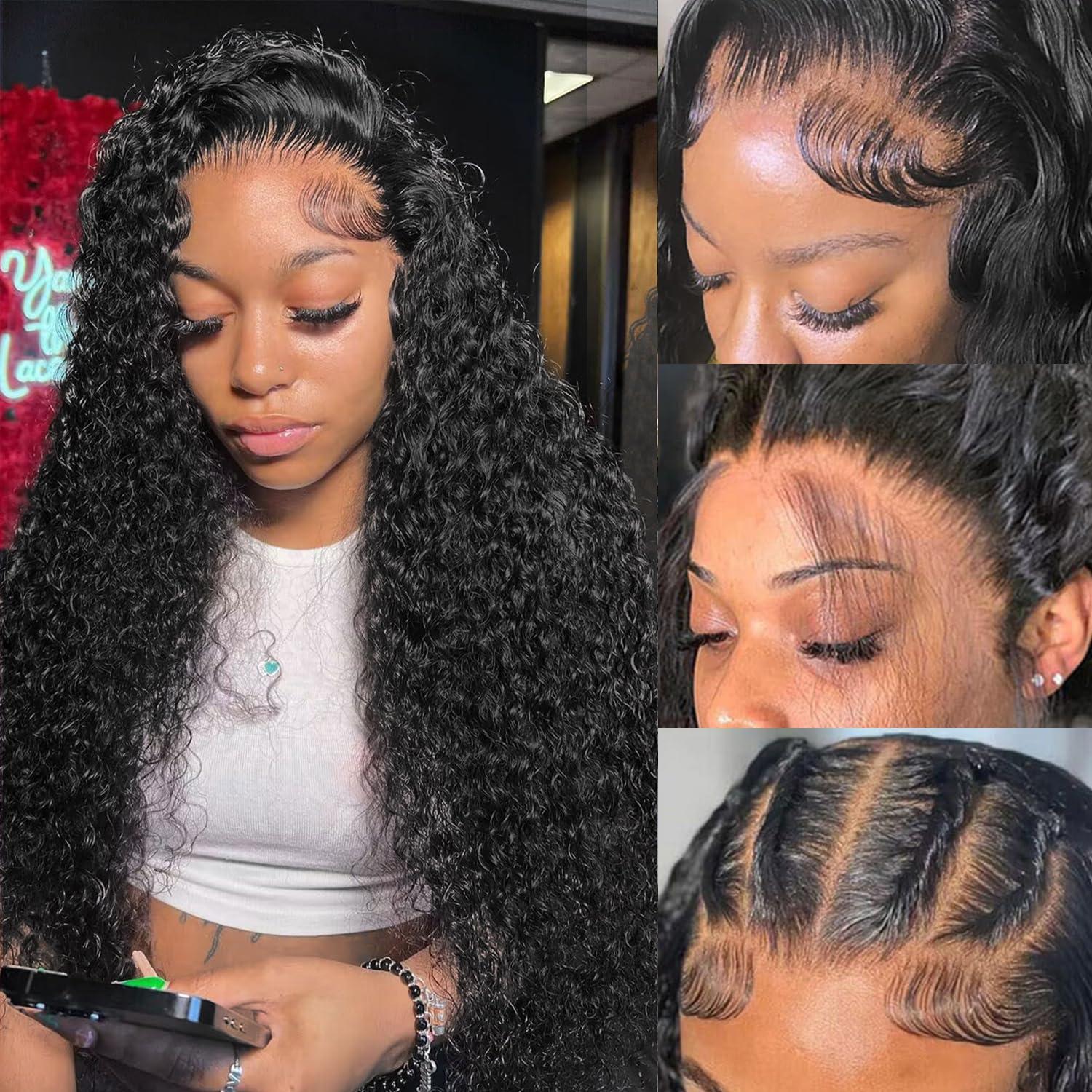 - 12A High Quality Curly Wig: 13x6 Lace Front Wigs Human Hair Pre Plucked with Baby Hair, 100% Unprocessed Brazilian Virgin Deep Wave Lace Front Wigs Human Hair, Healthy, Soft and Bouncy, No Shedding, No Tangle, No Smell.