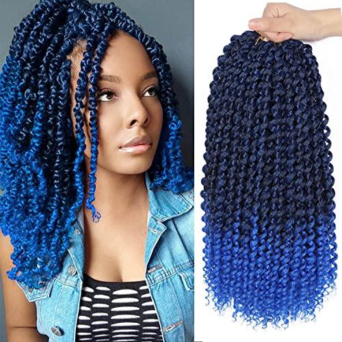 Ubeleco 14 Inch Ombre Blue Passion Twist Hair, Water Wave Crochet Hair For Women Passion Twist Crochet Hair 22 Strands/Pack Bohemian Synthetic Curly Braiding Hair Extensions (14 Inch (Pack of 7),1B/Blue)