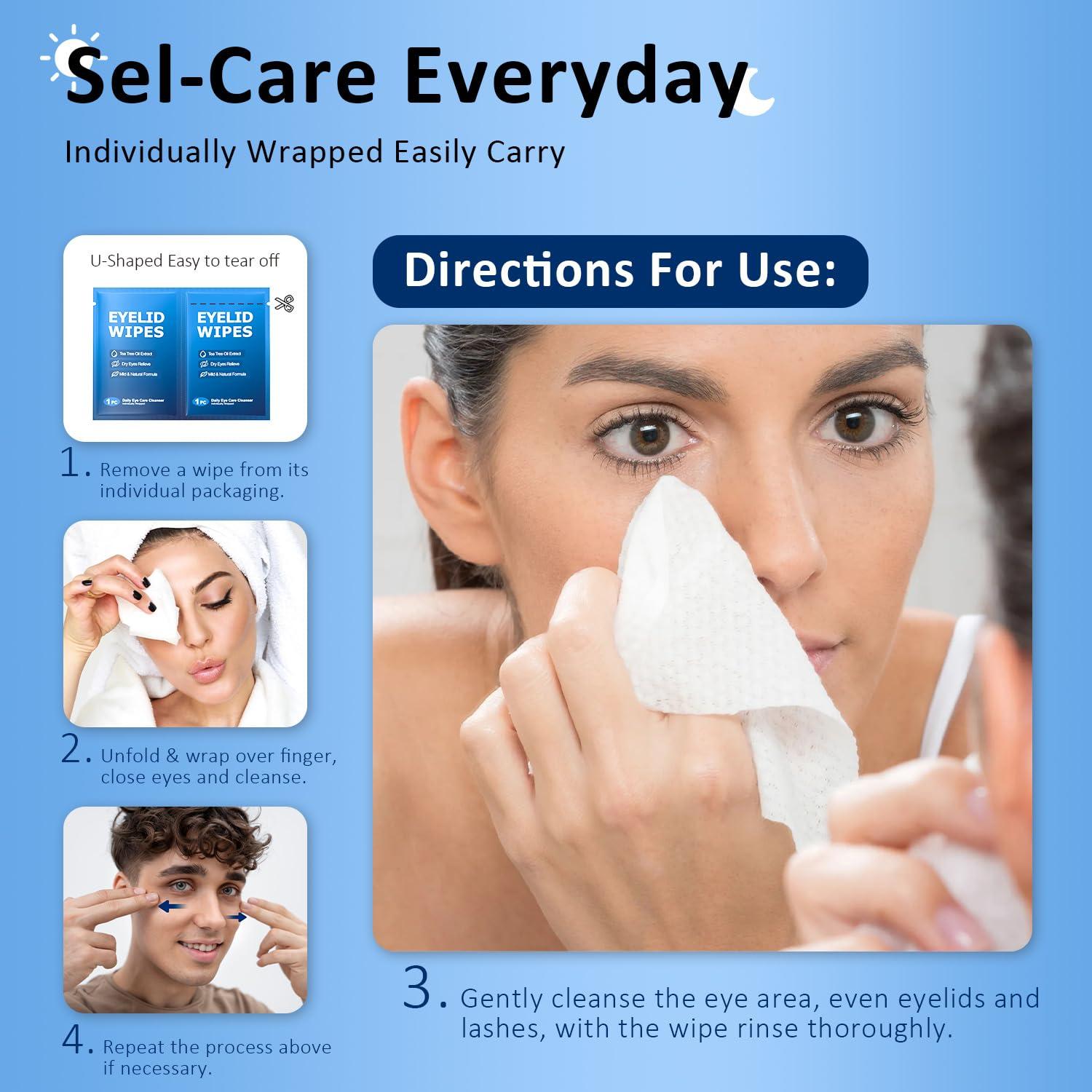 - Effortless, On-The Go: Individually wrapped sachets easily carry, clean and tidy ideal for private eye care. Gentle cleansing wipes for eyes, multi-level care to soothe, hydrated and nourish skin. You'll have never felt so fresh after using our eyelid cleanser wipes