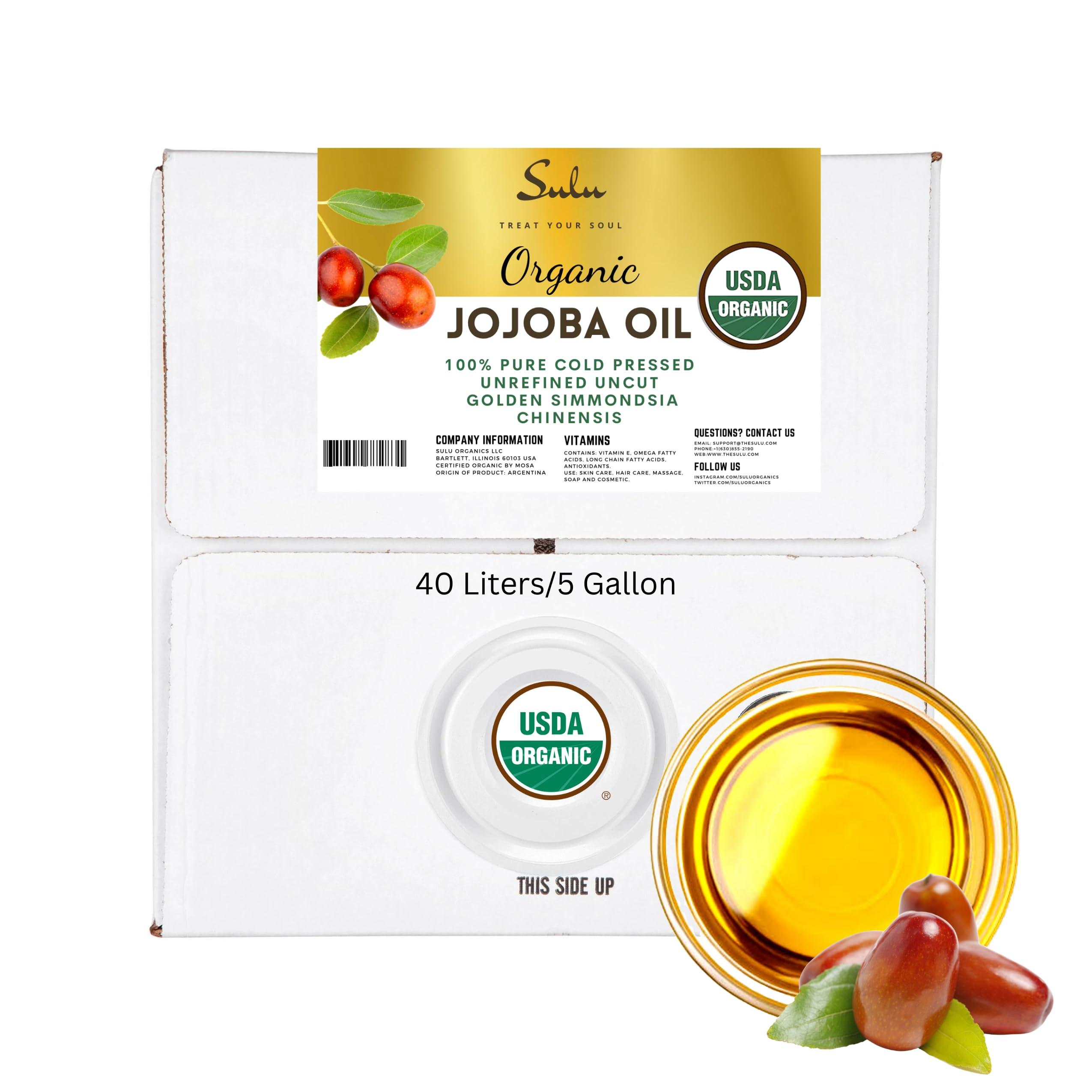 16 Liters/5 Gallons of Certified Organic Cold Pressed Unrefined Raw Uncut Golden Jojoba Oil