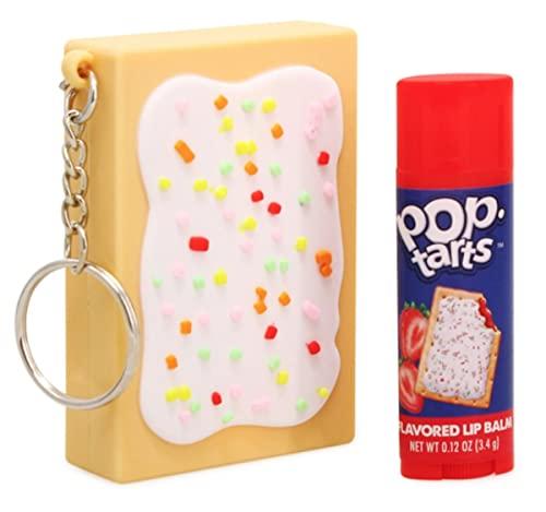 If you love Pop Tarts, you gotta carry this flavored lip balm and keychain with you everywhere! It's the coolest way to prevent chapped lips! Lip balm snaps into the back of the keychain so you can carry it everywhere. Mini Pop Tart keychain measures 3 by 2 inches. Strawberry flavored lip balm. Safe tested, cruelty free, paraben free