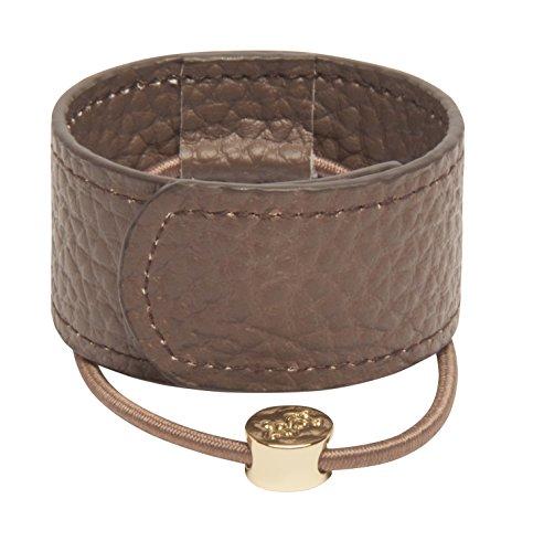 Update your pony with the chic Fromm 1907 Leather Hair Cuff! Snaps around your hair to fit any size bun or ponytail. Features a hidden hair band to provide a strong hold. Doubles as a wrist accessory to keep handy when not in use.