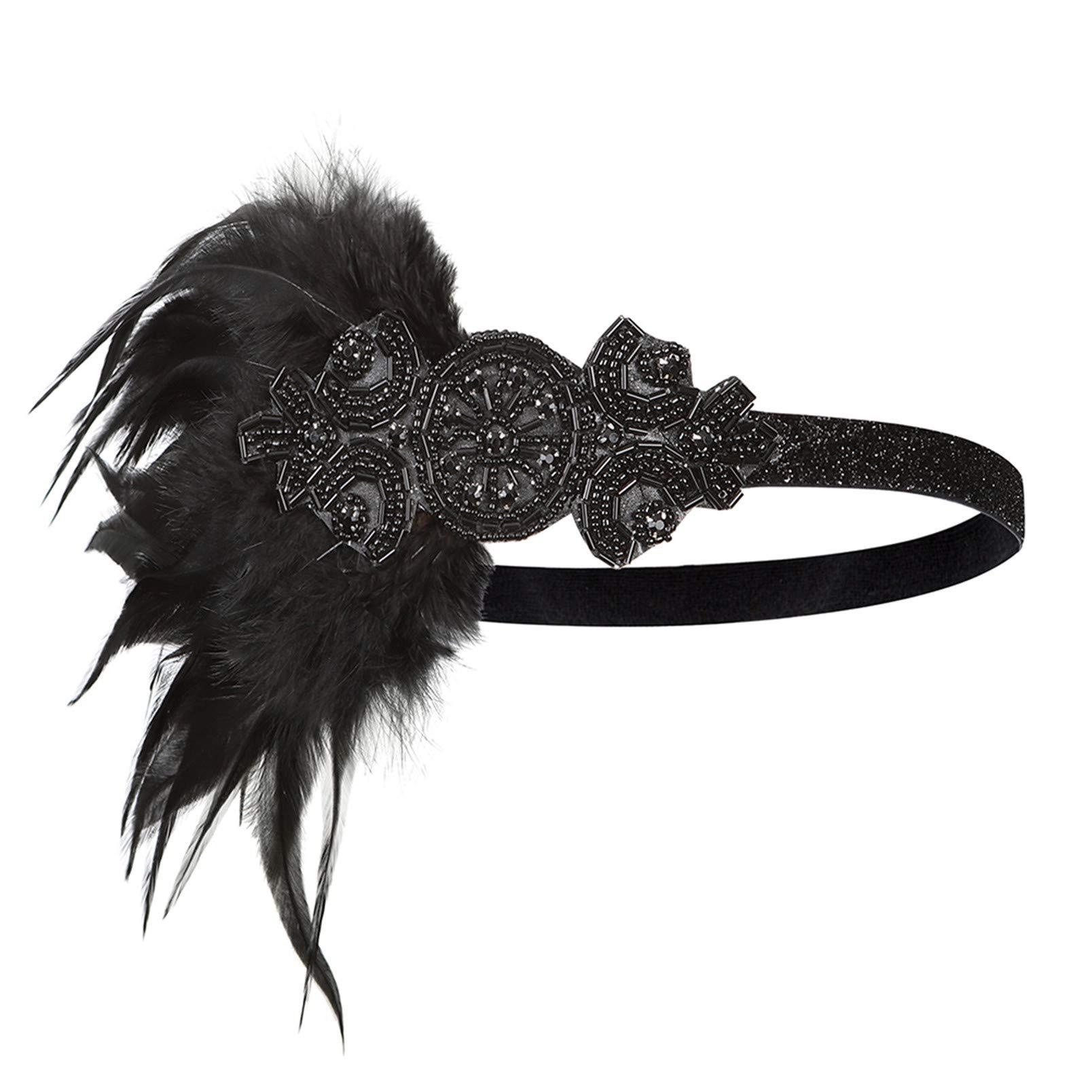 Lovfingu 1920s Accessories Flapper Headband Art Deco Roaring 20\'s Headpieces for Women Gatsby Costume Hair Clip 09Black