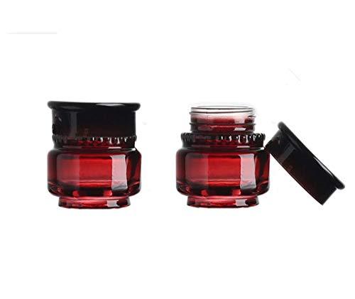 Wine red body with black lid.\nGlass body material with plastic lid.\nBPA Free upscale quality standards bottle with good sealing performance,\nSize:1.75\"(bottom diameter) x 2.39\"(total height)\nPackage:2 pcs.