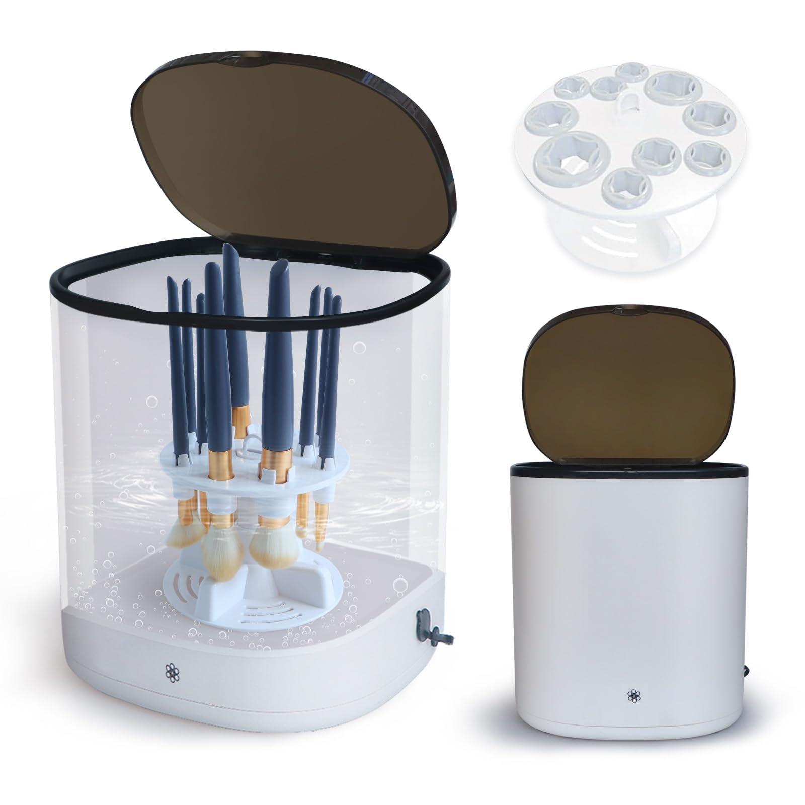 - MULTI-FUNCTIONAL COMPATIBILITY: Our electric makeup brush cleaner is designed with a large capacity and is suitable for various sizes of makeup brushes and sponges, including short-bristle blush brushes, nail brushes and double-ended makeup brushes. 9 brushes can be washed at the same time. It is suitable for cleaning both foundation brushes and liquid foundation, and can meet the cleaning needs of 95% of makeup brushes on the market.