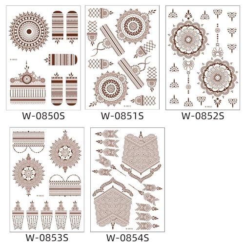 23 Pcs Brown Henna Tattoo Kit Waterproof Temporary Fake Tattoo Stickers for Women Girls DIY on Body Face Arms Legs