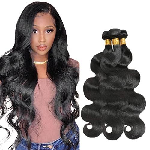 WuvuSnm 26 26 26 Inch Brazilian Remy Body Wave Human Hair Bundles Natural Black Color Unprocessed Virgin Hair Weave Body Wave Bundles Human Hair Extensions