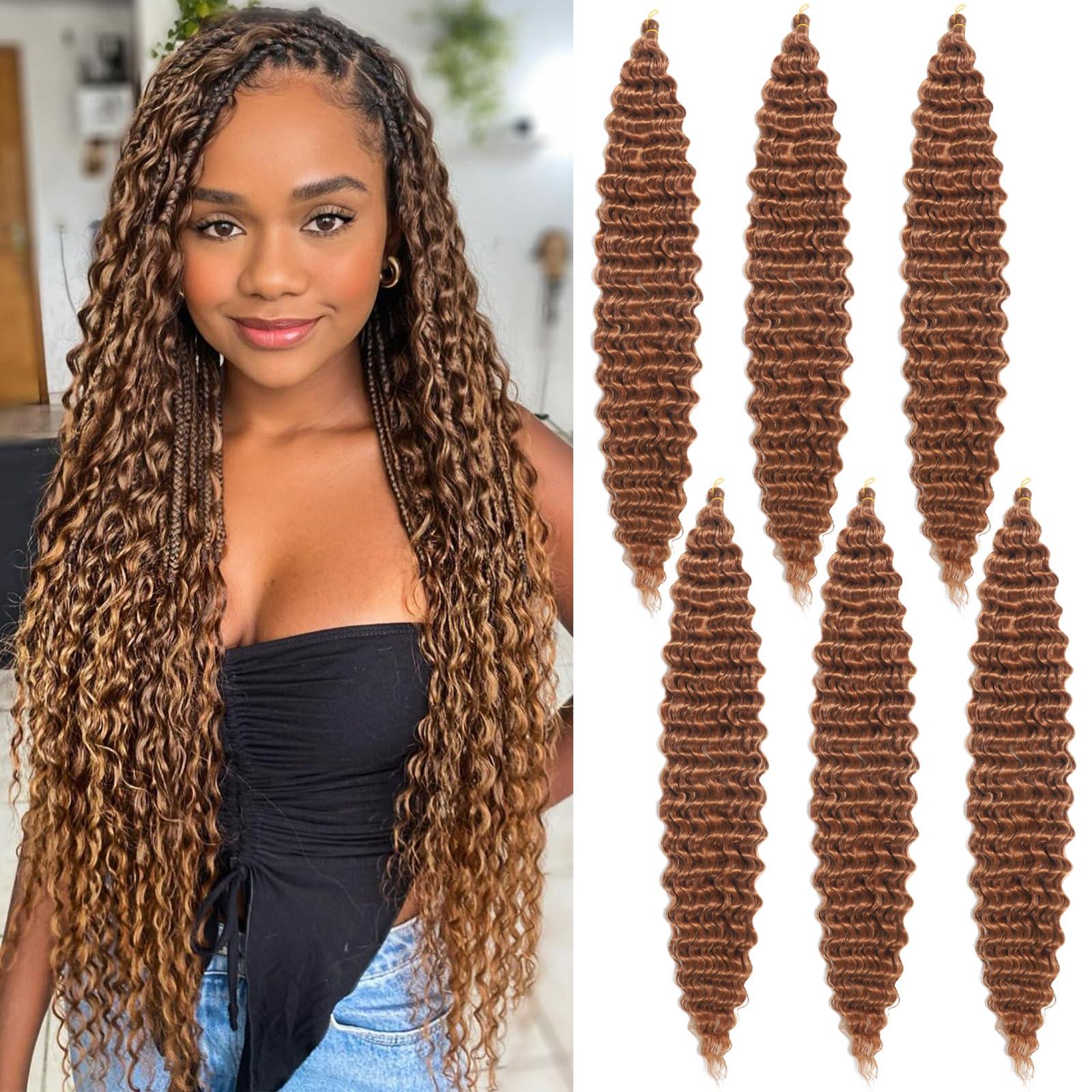 - Ocean Wave Crochet Hair Specification:Deep Wave Crochet Hair for Goddess Locs Braidis with Multiple Colors to Choose from:1B,30#,350#,4#,T1B/30,T4/30,Gery,T1B/Gery,T27/613,P27/613. Braiding Hair Length:26Inch and 30Inch,2 Packs and 6 Packs are Available,Also Mix Color,You Can Use the Curly Braiding Hair DIY a lot of Styling.Such As Boho Box Braids,Goddess Box Braids,Crochet Braids,Box Braids,Bohemian Braids,Goddess Braids,Senegalese Twist.