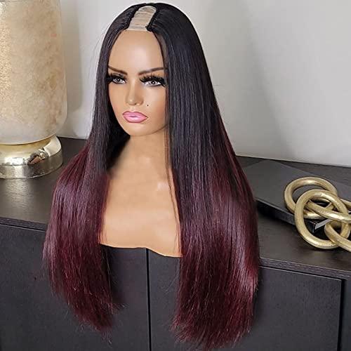 - 4.Silk Straight Burgundy wig with Middle Part U Wig Cap Human Hair :22.5 Inches Average Size,Can Be Adjusted Wig Cap;