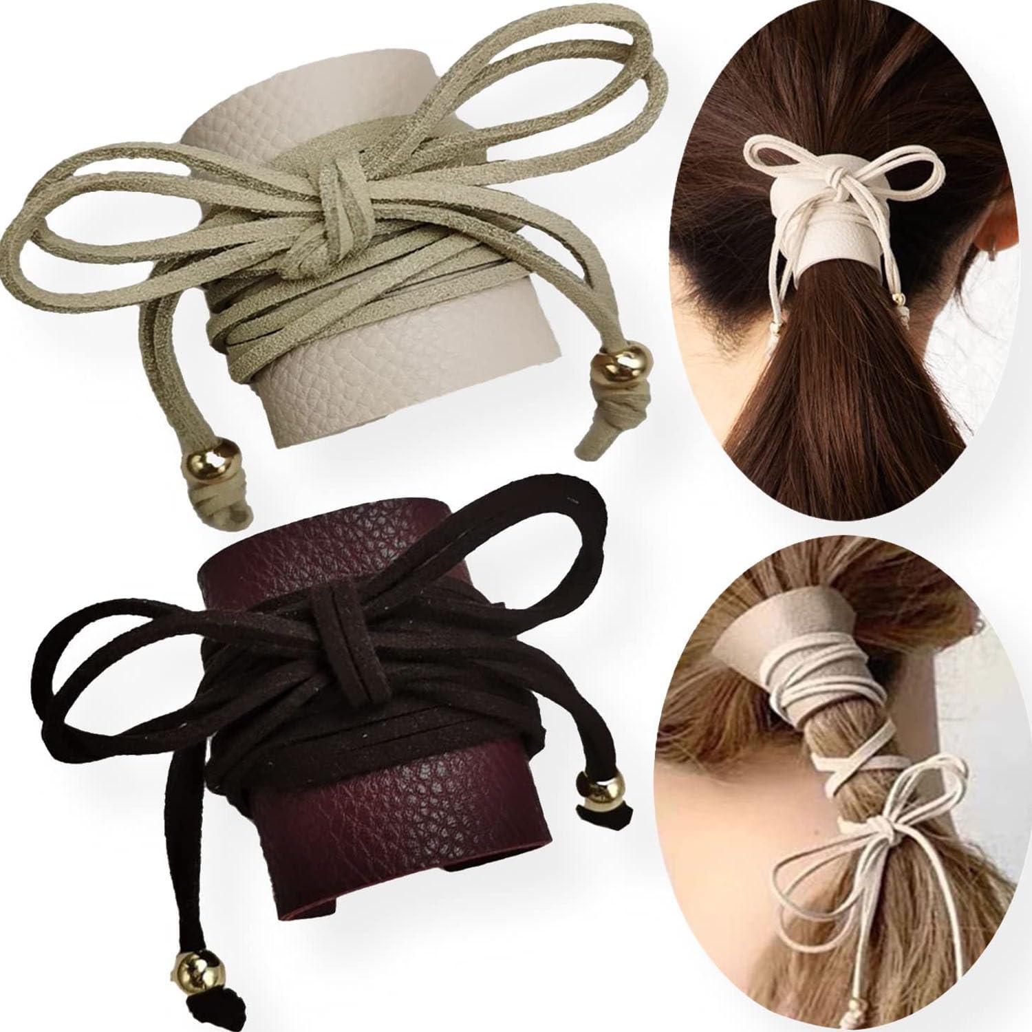 - Handmade Leather Hair Ties You will receive 2 brown and Wine Red leather hair wrap in different colors to meet your daily needs. The leather hair ties for ponytails barrette is made of leather and will fit any thickness of hair. It's perfect for people who are looking for a barrette that will stay in place.