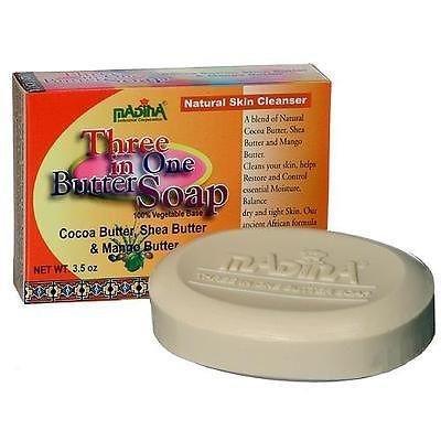 A blend of natural cocoa butter, Shea butter and mango butter. Cleans your skin, helps restore and control essential moisture. Balances dry and tight skin. our ancient African formula has been fortified with the botanical ingredients.INGREDIENTS: SODIUM PALMATE; SODIUM COCOATE OR SODIUM PALM KERNELATE; PURE WATER; VEGETABLE GLYCERIN; FRAGRANCE; TITANIUM DIOXIDE; PENTASODIUM PENTETATE; TETRASODIUM; ETIDRONATE; IRON OXIDE(S); MANGIFERA INDICA (MANGO) SEED BUTTER; BUTYROSPERMUM PARKII (SHEA) BUTTER; THEOBROMA CACAO (COCOA) SEED BUTTER; OLIVE OIL, SWEET ALMOND OIL; CASTOR OIL.WARNING: FOR EXTERNAL USE ONLY. DO NOT GET INTO EYES.