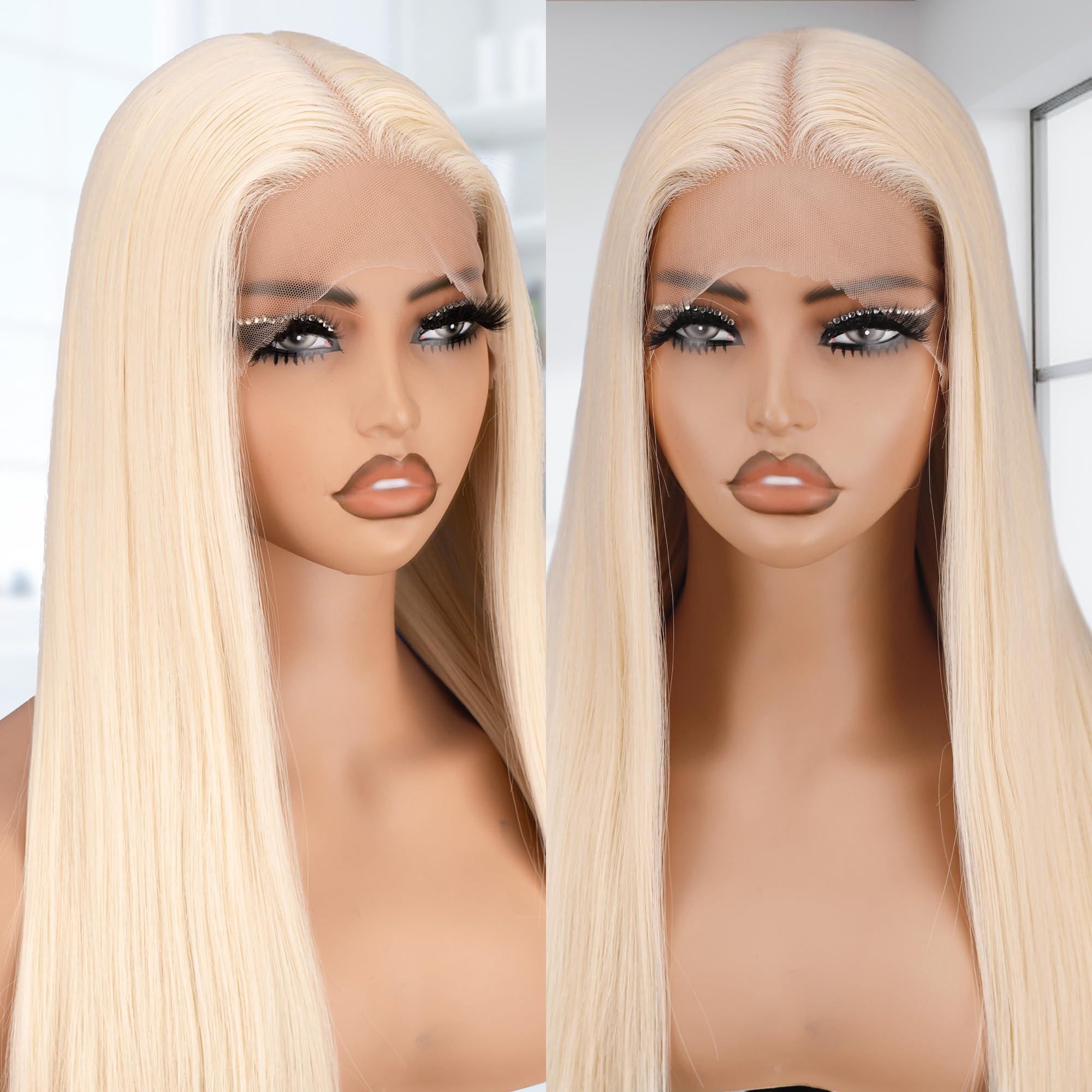 30 Inch Blonde Lace Wig, Platinum Blonde Lace Front Wigs White Synthetic Silk Straight Pelucas Natural Hairline 613 Wig (Light Blonde 613, 30 Inch)