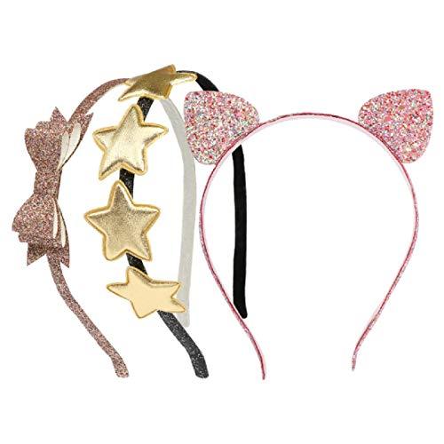 - 3 Pieces Headband Set: A set of 3 pieces include glitter bowknots, pink glitter cat ears and gold stars headband. Cute and eye-catching, easy to add to your hairs. They gave you extra hair accessories when you want to add something extra on your hair, making your hairstyle more attractive