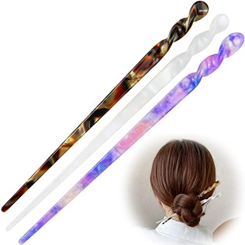 3Pcs Resin Hair Sticks Japanese Hair Chopsticks for Buns Hair Pins for Ladies Long Hair Chignon