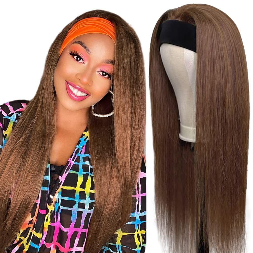 - Headband Wig Cap Size:The headband wig is #4 color,Chocolate dark brown.14-34 inch.150 percent density.Average size cap 22-22.5 Inch,Glueless velcro snapping design, Easy to adjust the cap, Suitable for most head size.