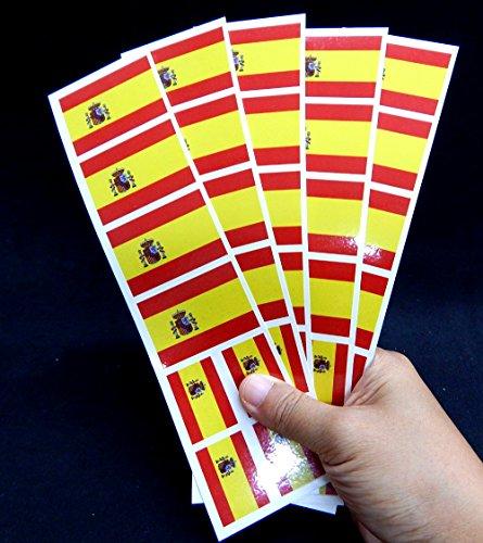 One order = 5 sheets. Each sheet features 8 Spanish Flags (4 are 4.5 cm width, 4 are 3cm width) so you receive a total of 40 temporary tattoos. Rich colors last for days (depends on your skin). These are applied with water and are waterproof. Great for Spain parties! Note the images above may be "mirrored". The flag will be backwards on the sheet; when you apply it to your body the image will flip and display properly.