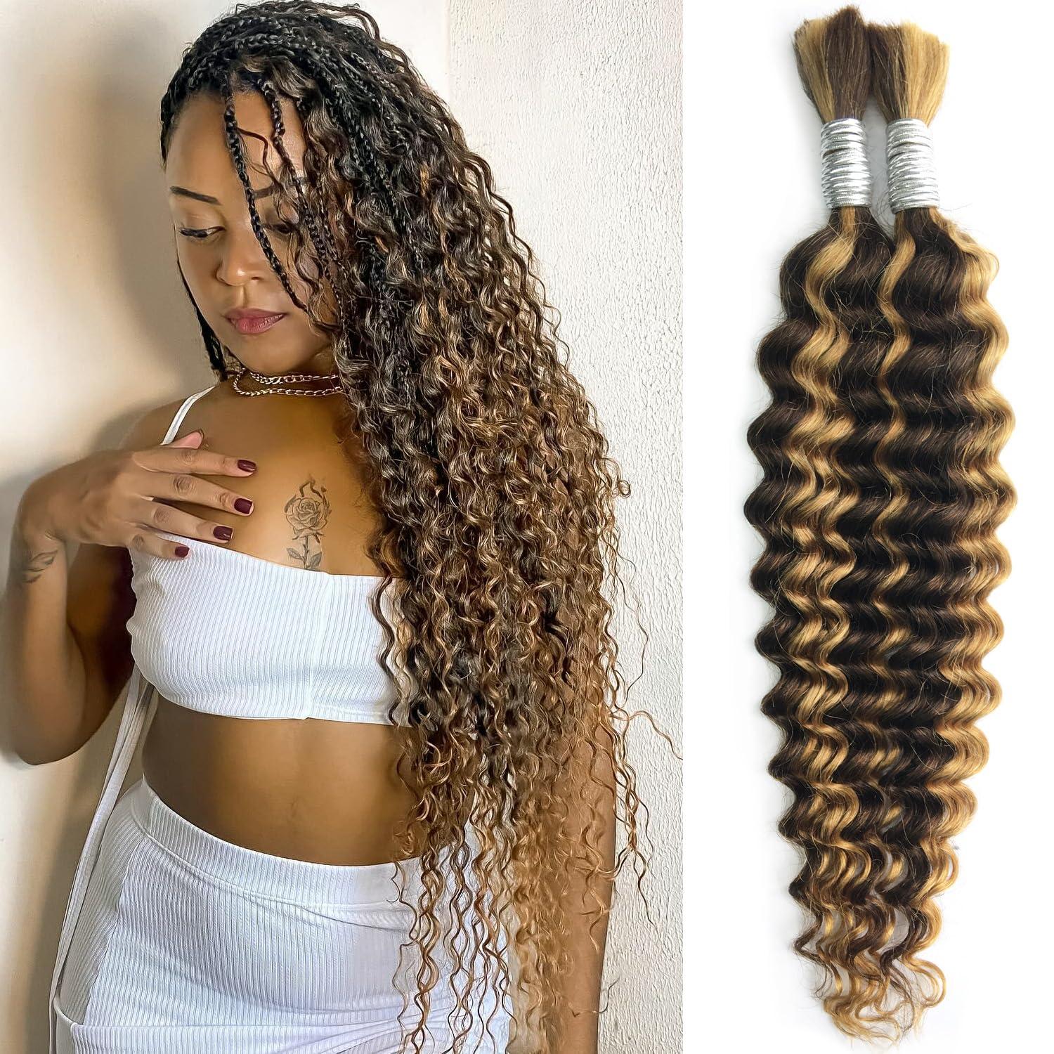 - Special Attension: Highlight Blonde Deep wave human hair bulk is 100g (About 3.6 ounces)/pack, including 2 human hair bundles for braiding. If you want to do a full Bohimian braids, for a full boho look, we recommend you buy 3 or 4 packs. And our details page lists the effects of using 100g, 200g, and 300g respectively for your reference.