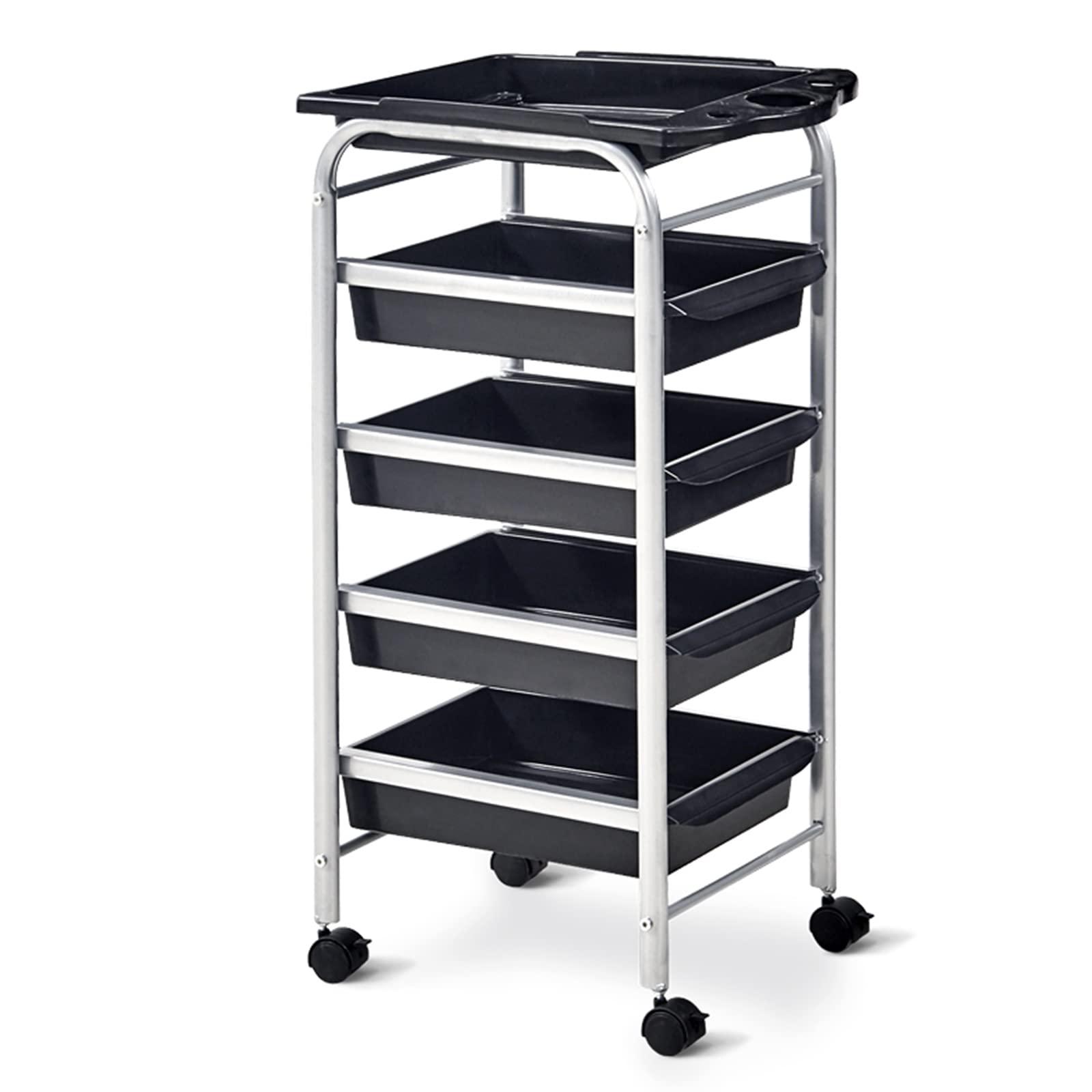 • EXTRA STORAGE -- This rolling cart for salon with four/five slide-out drawers are fully removable and secured. Tool organizers on the top are designed for the salon professionals to organize tools and accessories.
