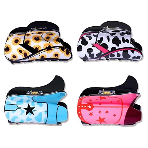 4/6PCS Western Hair Claw Clip for Women, Cowgirl Hat Boot Large Hair Clips, Nonslip Leopard Sunflower Hair Jaw Clamps for Thick Thin Hair (4PCS C)