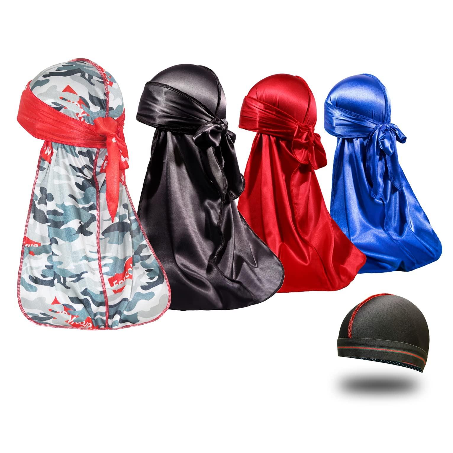 - Package: Including 1 designer durag, 3 different color silky durag and one wave cap. They will help you to get better wave by increasing compression, and protect your wave when sleeping. They also will meet your needs no matter when and where you are