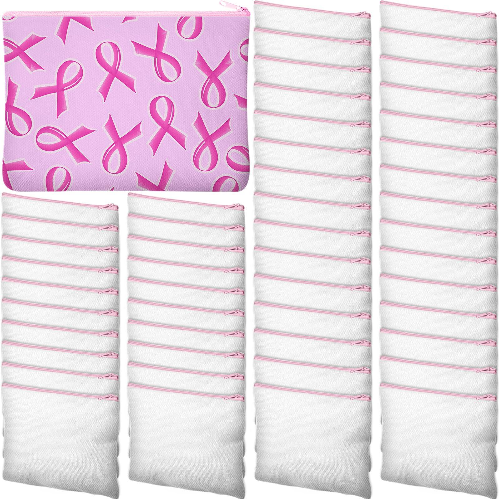 Frienda 50 Pieces Sublimation Blank Canvas Makeup Bags Bulk Blank DIY Heat Transfer Cosmetic Makeup Bags Canvas Pen Case Pencil Bags Clear Sublimation Blank Pouch with Zipper (White, Pink,7 x 4.3 Inch)