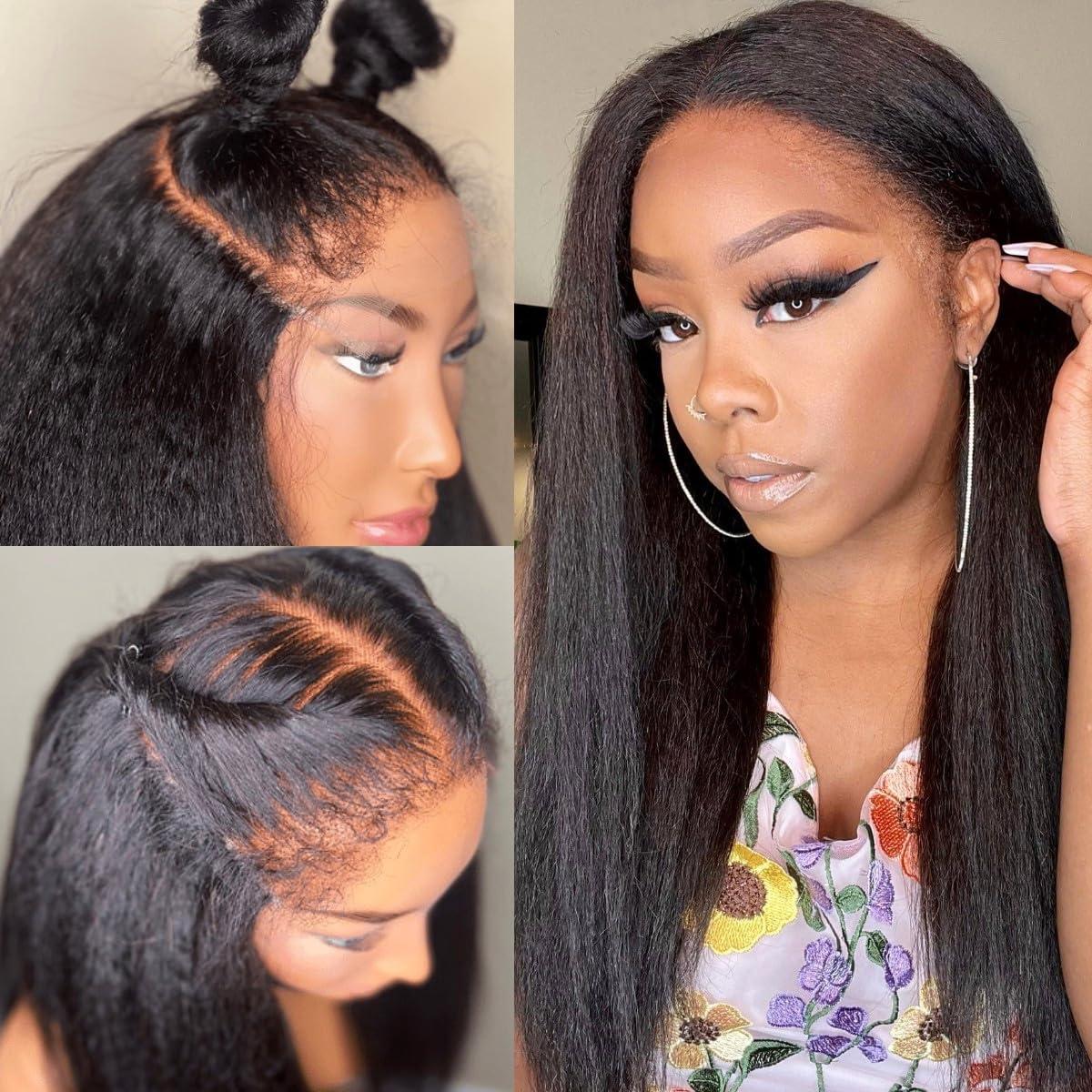 - 5.Suit Occasion: Kinky Straight Glueless Wig Human Hair HD Lace Closure Wigs Human Hair 180% Density, Full & Thick. Can be Side Part, Middle Part, High Ponytail & Bun, Can Design Any Shape You Like, Suitable for Any Occasion.