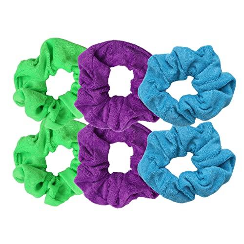 These terry towel scrunchies are great for your hair when wet or dry. Wear these scrunchies to the pool, after the shower, or when exersizing. Made of microfiber terry they are soft stretchy and gentle in the hair. Great for women and girls. 6 Pack.