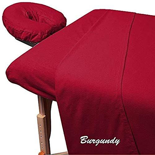 600 Thread-Count 3-Piece Massage Table Spa Sheet Set (1Pc Fitted Sheet Fit up to 7" Inch Deep Pocket, 1Pc Flat Sheet & 1Pc Fitted Face Rest Cover) 100% Egyptian Cotton Burgundy