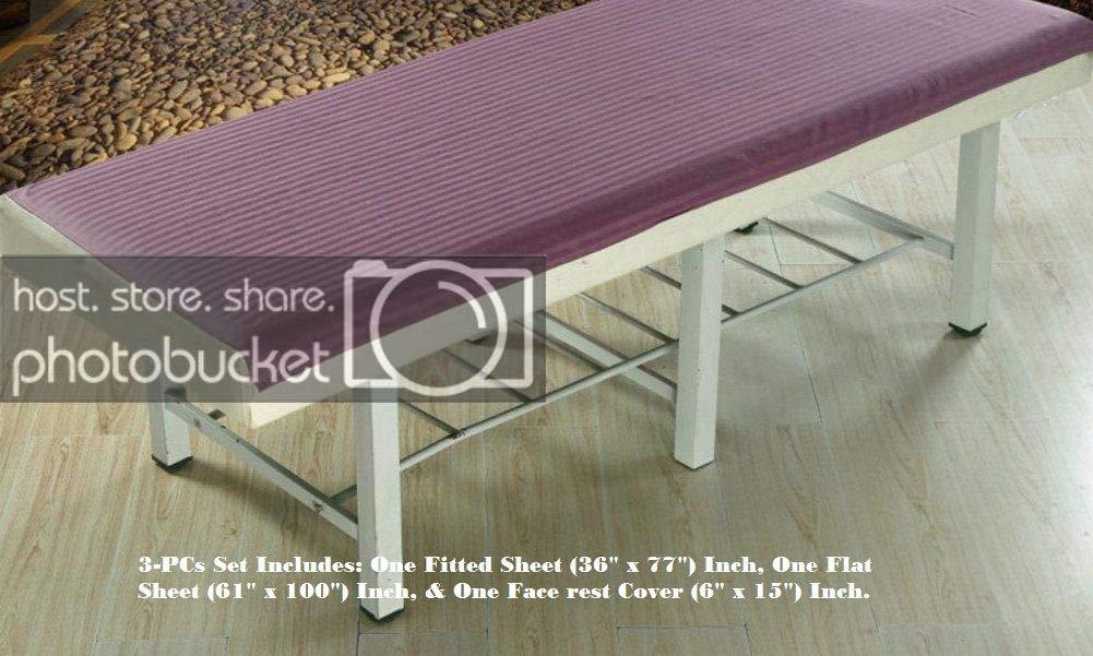 - 3-PCs Set Includes: One Fitted Sheet (36" x 77") Inch, One Flat Sheet (61" x 100") Inch, & One Face rest Cover (6" x 15") Inch.