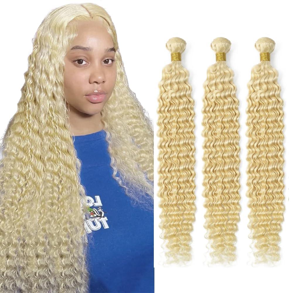 - 3.Hair Color:613 Blonde Deep Curly Wave Bundles Hair.