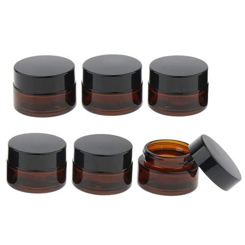 6 Pcs Amber, 5 ml 1/6 oz glass jars, with inner liners and dome lids.