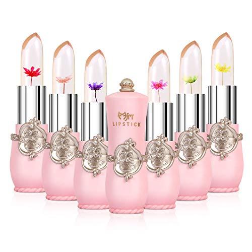 6Pcs Flower Jelly Lipstick Set Moisturizer Temperature Color Change Lip Gloss Long Lasting Lipsticks for Women Girls