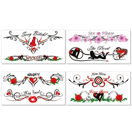 - COMPLETELY WATERPROOF - our erotic tattoos last for several days, won't wash off and are sweat proof. Our fake kinky tattoos use only non-toxic materials