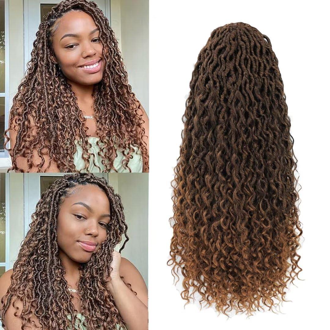 - 1. Pre-Looped Goddess Locs Crochet Hair Package Include: 8 packs 18inch River Locs Goddess Crochet Braiding Hair + 1 Crochet Needle + 2 Hair Clips + 10 Hair Rings,New Goddess Locs Crochet Hair 18inch River Locs Crochet Hair for Black Women