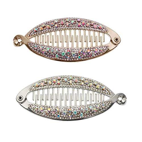 - The package includes:2 pcs Women's diamond hair clip ponytail banana clip