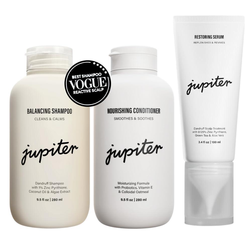 - Clinically-tested Formulations: Say Goodbye to Flakes, Itchiness, Redness, and Irritation! Jupiters dermatologist-tested and loved medicated dandruff shampoo treats your scalp, while our moisturizing scalp conditioner leaves your hair shiny, healthy, and reduces breakage and tangling. Also included is our exfoliating scalp brush that gently removes build-up from flaking and styling products, adds luster by distributing oil, and massages the scalp to deliver a deep, calming clean.