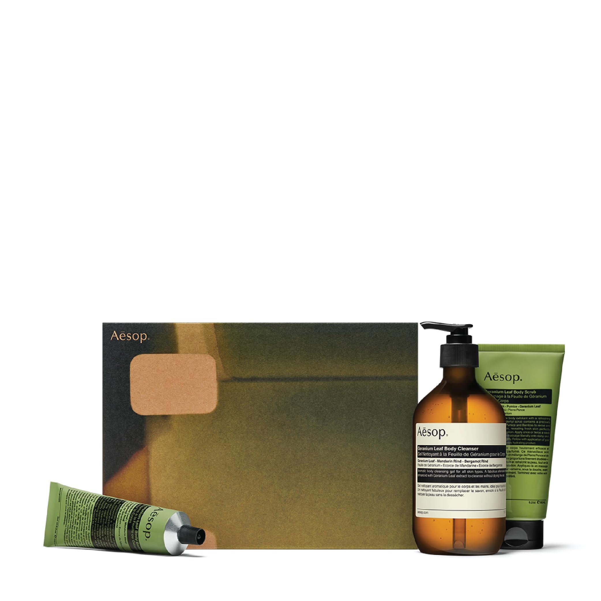 - Complete Body Care Set: Includes Geranium Leaf Body Cleanser, Body Scrub, and Body Balm to provide a refreshing and luxurious shower experience.