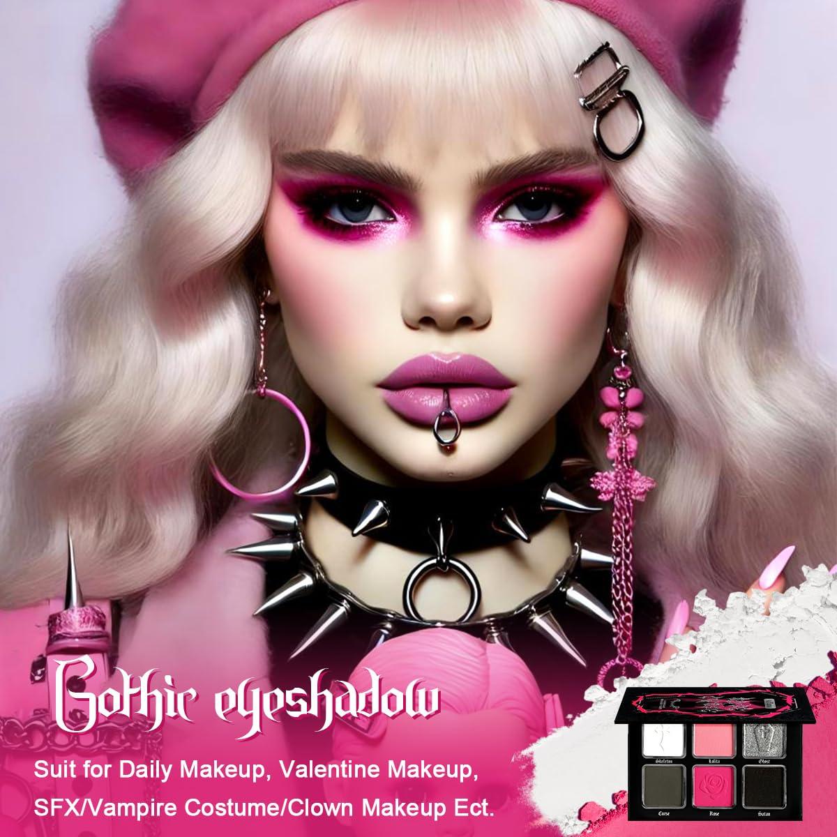 - GOTH PINK MAKEUP PALETTE: 6 highly pigmented shades including pink, rose, black, white, grey, and silver for creating dark, edgy, and emo-inspired looks, daily makeup and Valentine makeup