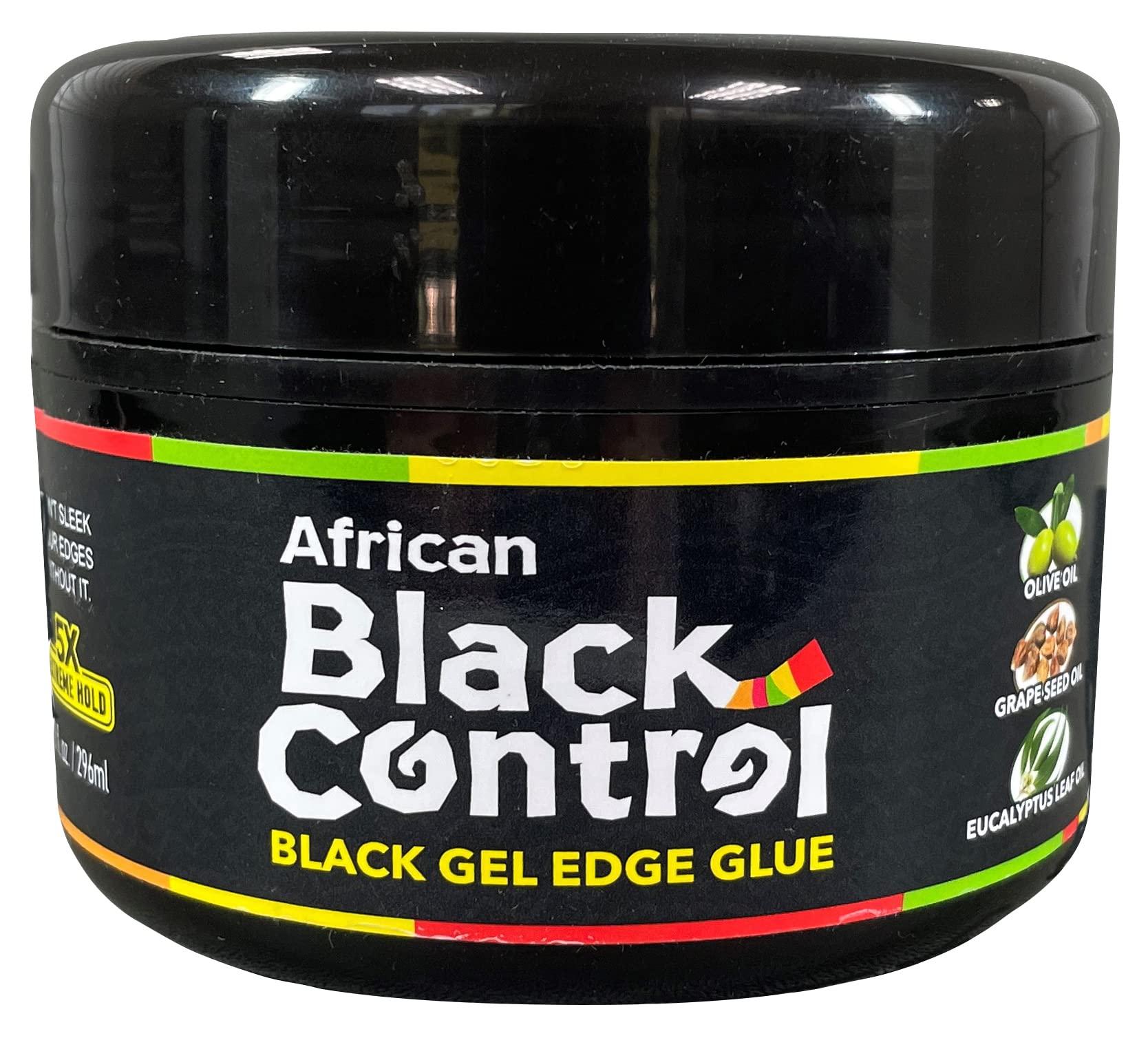 African Black Control Black Gel Edge Glue is perfect for smoothing down edges, reducing frizz and flyaways when braiding and holding locs in place. Its fast drying, water based formula provides extra shine and 48 hours of strong hold, without causing flaking, itching, or peeling around the edges. Contains Grape Seed Oil which works as an all-weather conditioner and Eucalyptus Leaf Oil which helps soothe and calm the scalp.