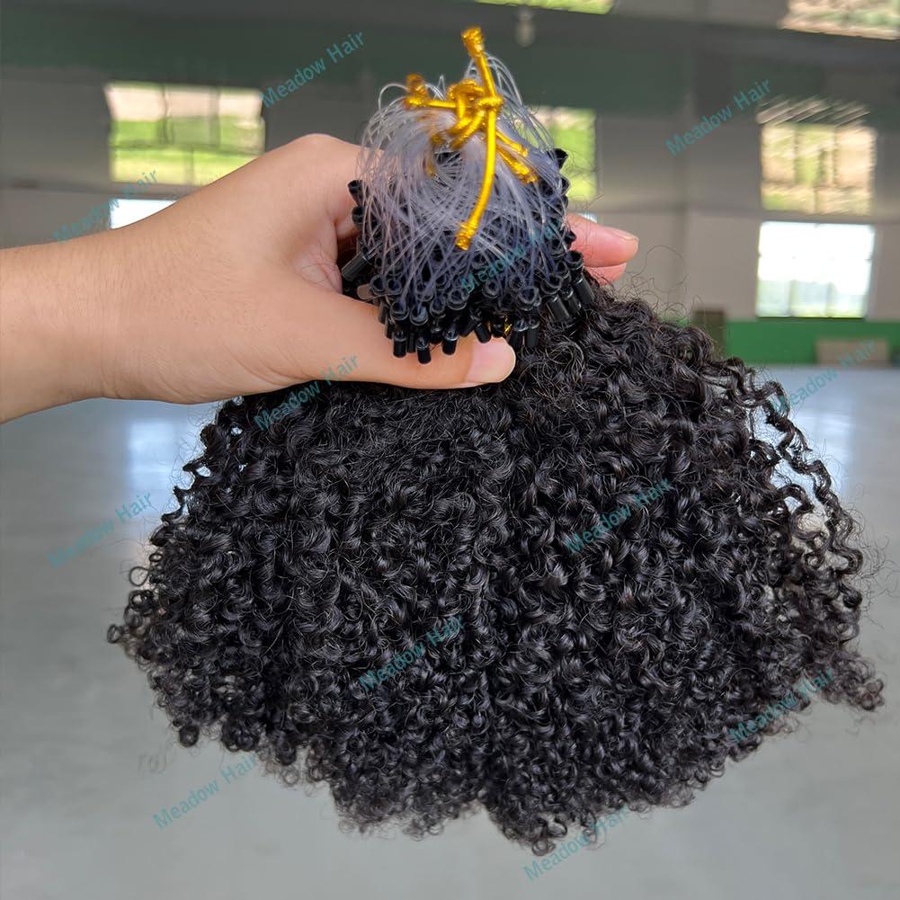 Meadow hair Afro Kinky Curly Micro Link Human Hair Extensions Brazilian Virgin Micro Links Hair Extensions 100 Strand Micro Loop Real Human Hair Extensions For Black Women 80G 14Inch