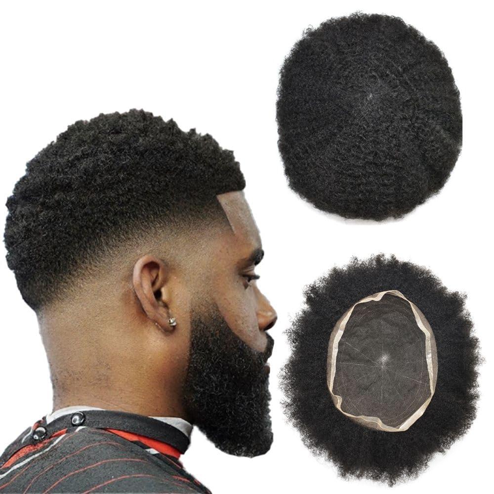 - Afro Toupee for Black Men Brazilian Kinky Curly Wigs for Men Natural Black Brazilian Curl Human Hair Pieces 360 Wave Hair Replacement System African American Men Weave Hairpieces Full French Lace Afro Mens Toupee