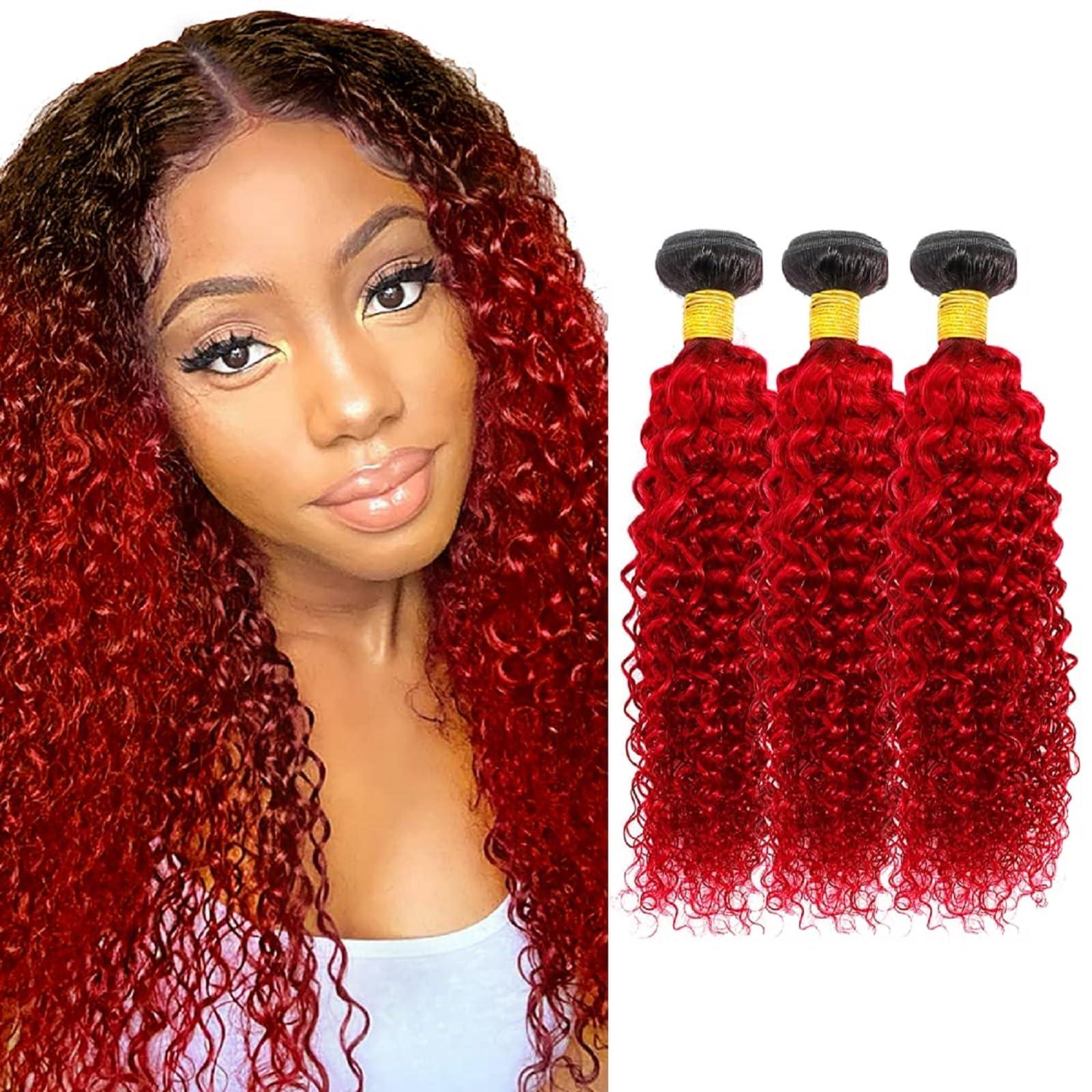 Hair Material: 100% Unprocessed Deep Wave Brazilian Virgin Burgundy T1B/RED Human Hair Bundles