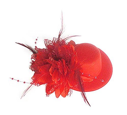 Aimeely Elegant Girls Children Feather Flower Hat Veil Convenience Headpieces with Clip Red