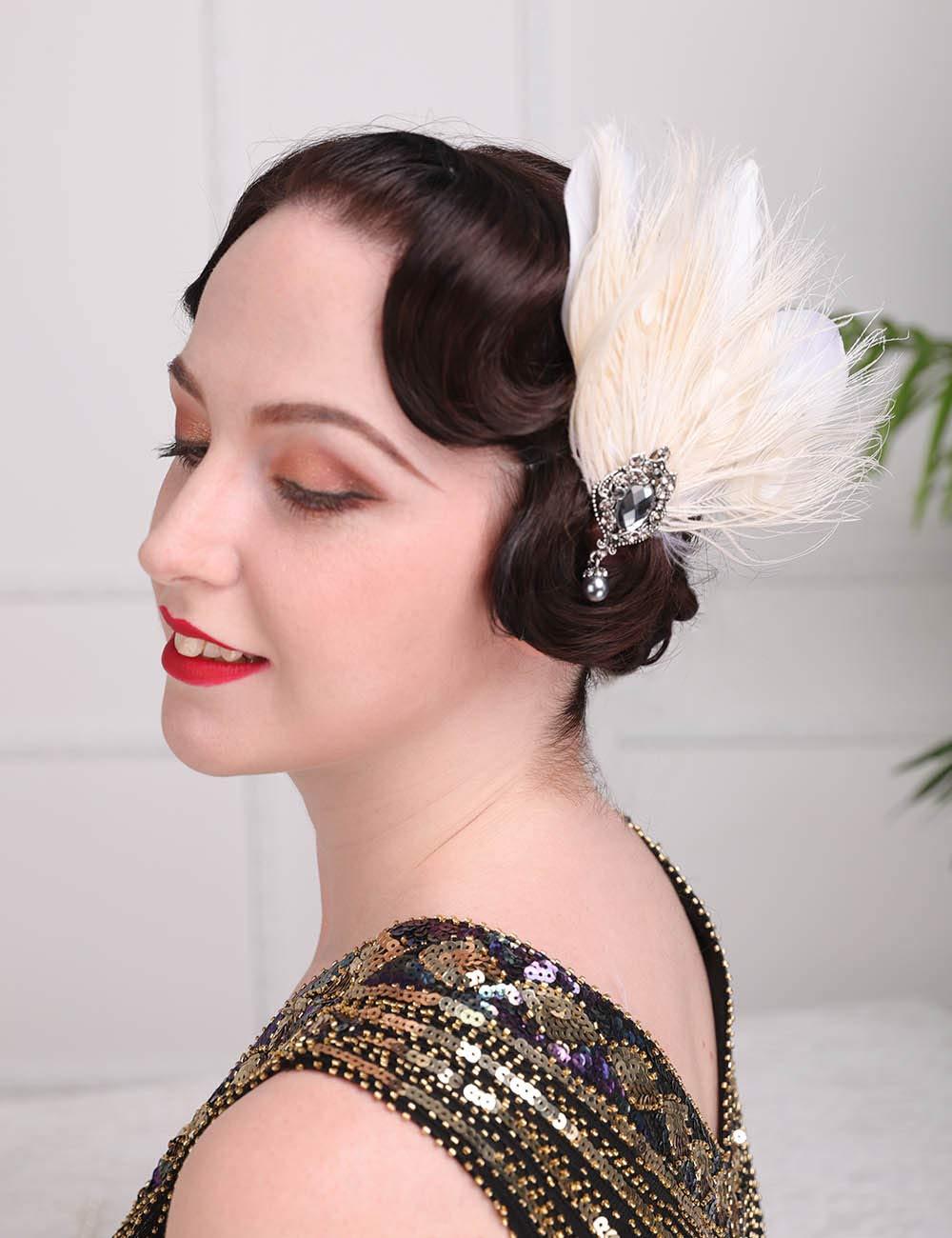 - 1920s flapper hair accessories-- Made by hand with soft and fluffy feathers and exquisite crystal accessories