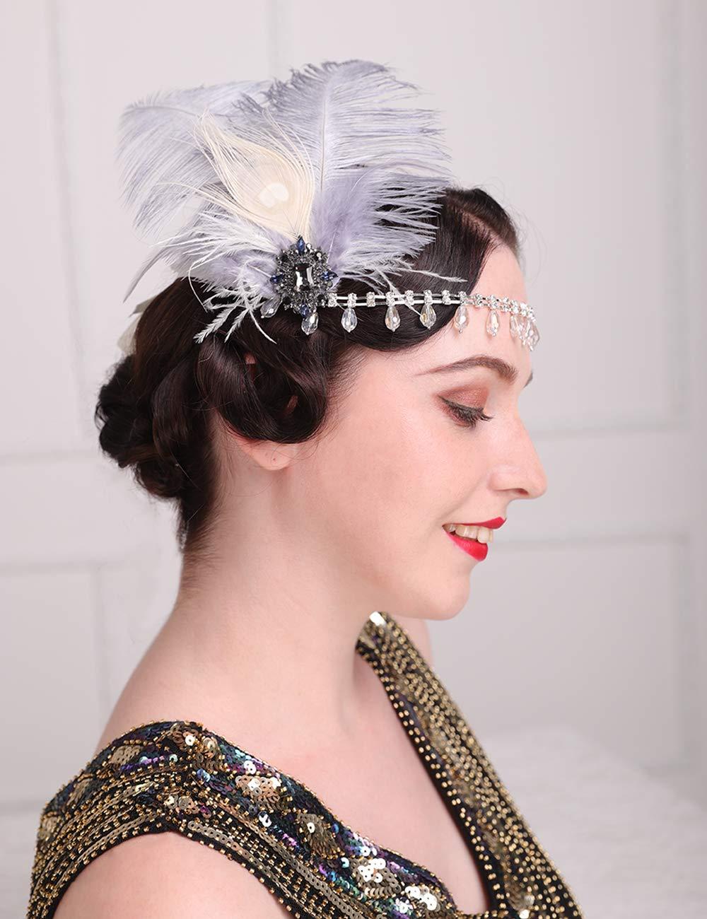 - 1920s flapper hair accessories-- Made by hand with soft and fluffy feathers and exquisite crystal accessorie