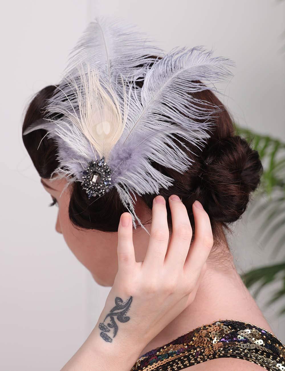 - Color-- Gray. Size of feather hair clip-- 18cm * 20 cm/7.1 inch * 7.9 inch.